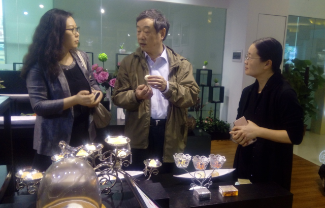 2017年2月22日,中國(guó)香料香精化妝品工業(yè)協(xié)會(huì)理事長(zhǎng)陳少軍先生、中國(guó)香料香精化妝品工業(yè)協(xié)會(huì)項(xiàng)目合作部副主任王婷婷女士,蒞臨棟方股份考察交流。棟方股份董事長(zhǎng)唐新明、技術(shù)顧問曾颯博士、技術(shù)研究部高合意工程師陪同參觀。
