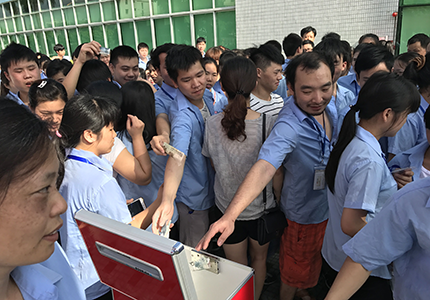 一方有難,八方支援。6月12日上午8:30,棟方全體員工齊聚在升旗臺(tái)前,為嚴(yán)安喜同事進(jìn)行現(xiàn)場(chǎng)募捐。10元、20元、100元、200元、500元......大家紛紛慷慨解囊、踴躍捐款,獻(xiàn)出了自己的一份愛心和力量,現(xiàn)場(chǎng)氣氛異常感人。