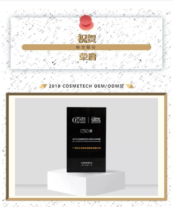祝賀棟方股份榮獲全球美妝供應(yīng)鏈權(quán)威大獎(jiǎng)——2019 COSMETECH OEM/ODM獎(jiǎng)
