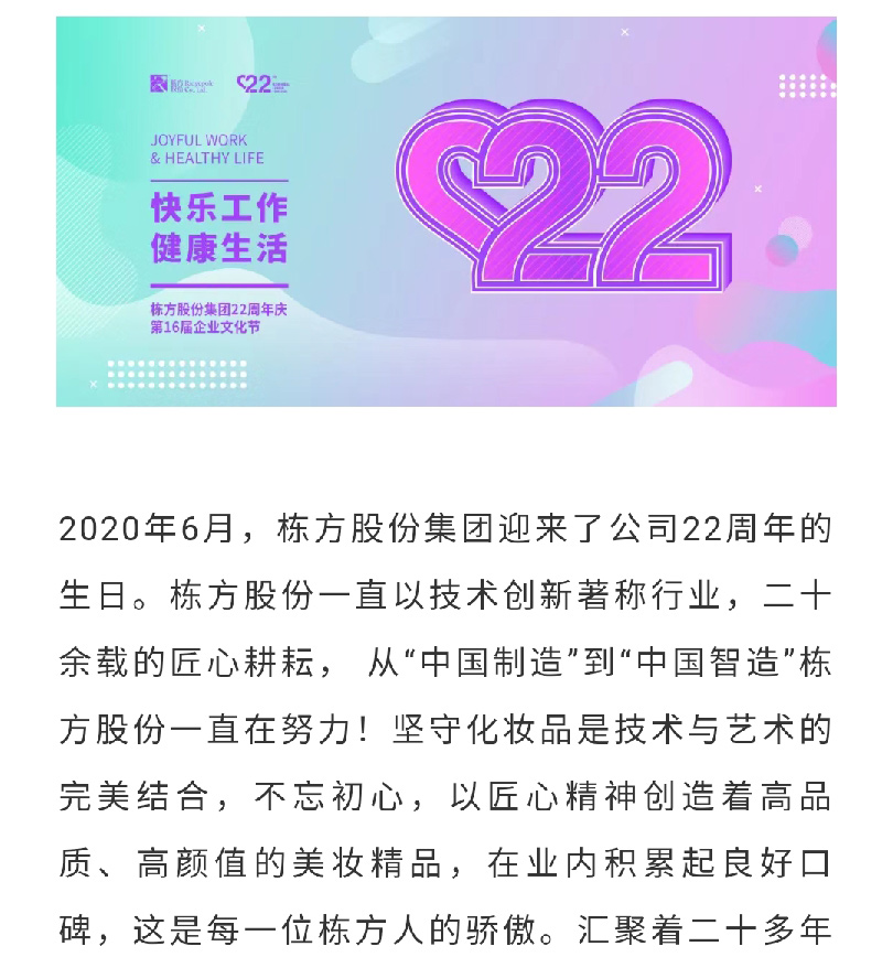 礪程二十二載,我們創(chuàng)造美麗丨熱烈慶祝棟方股份集團(tuán)創(chuàng)立22周年