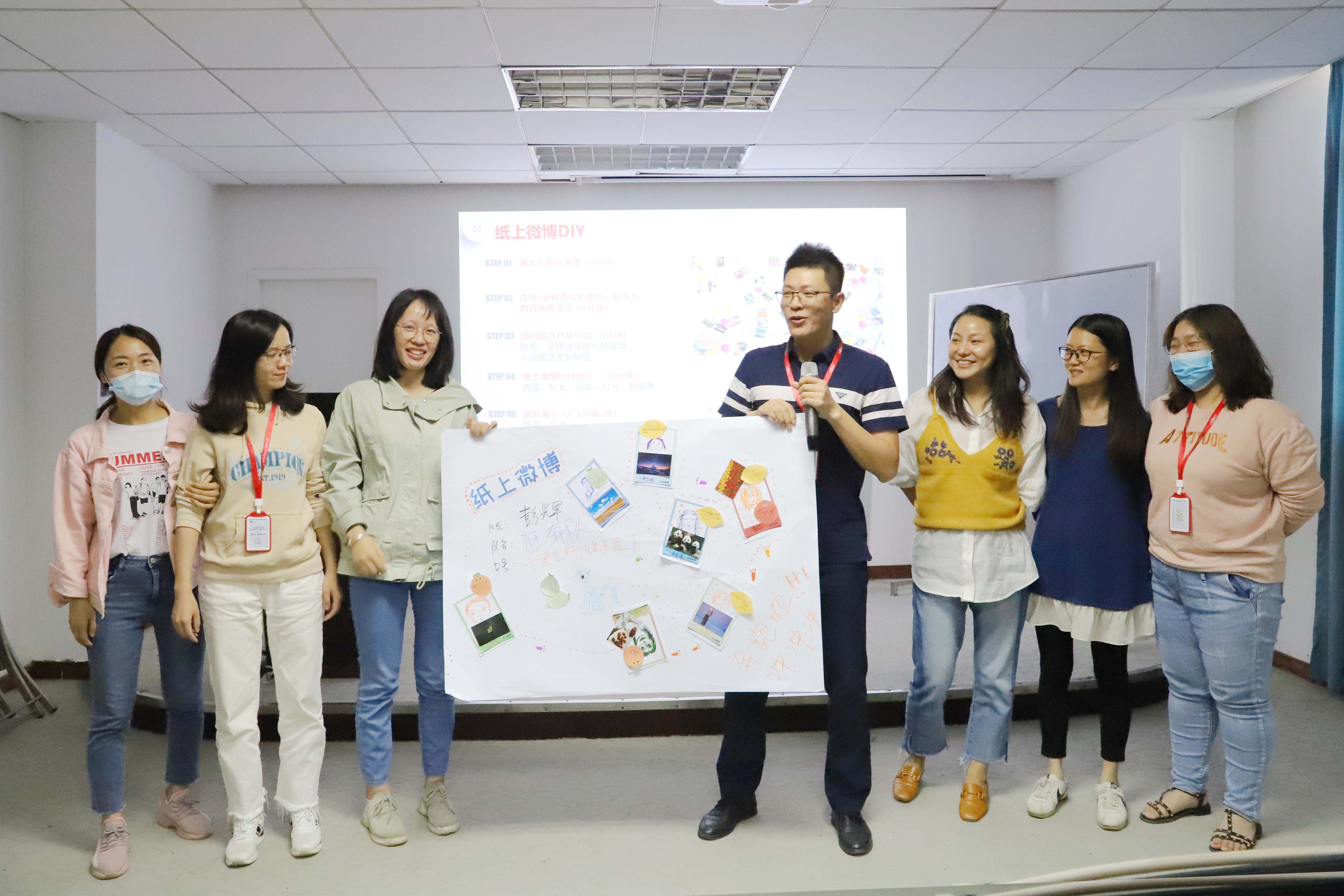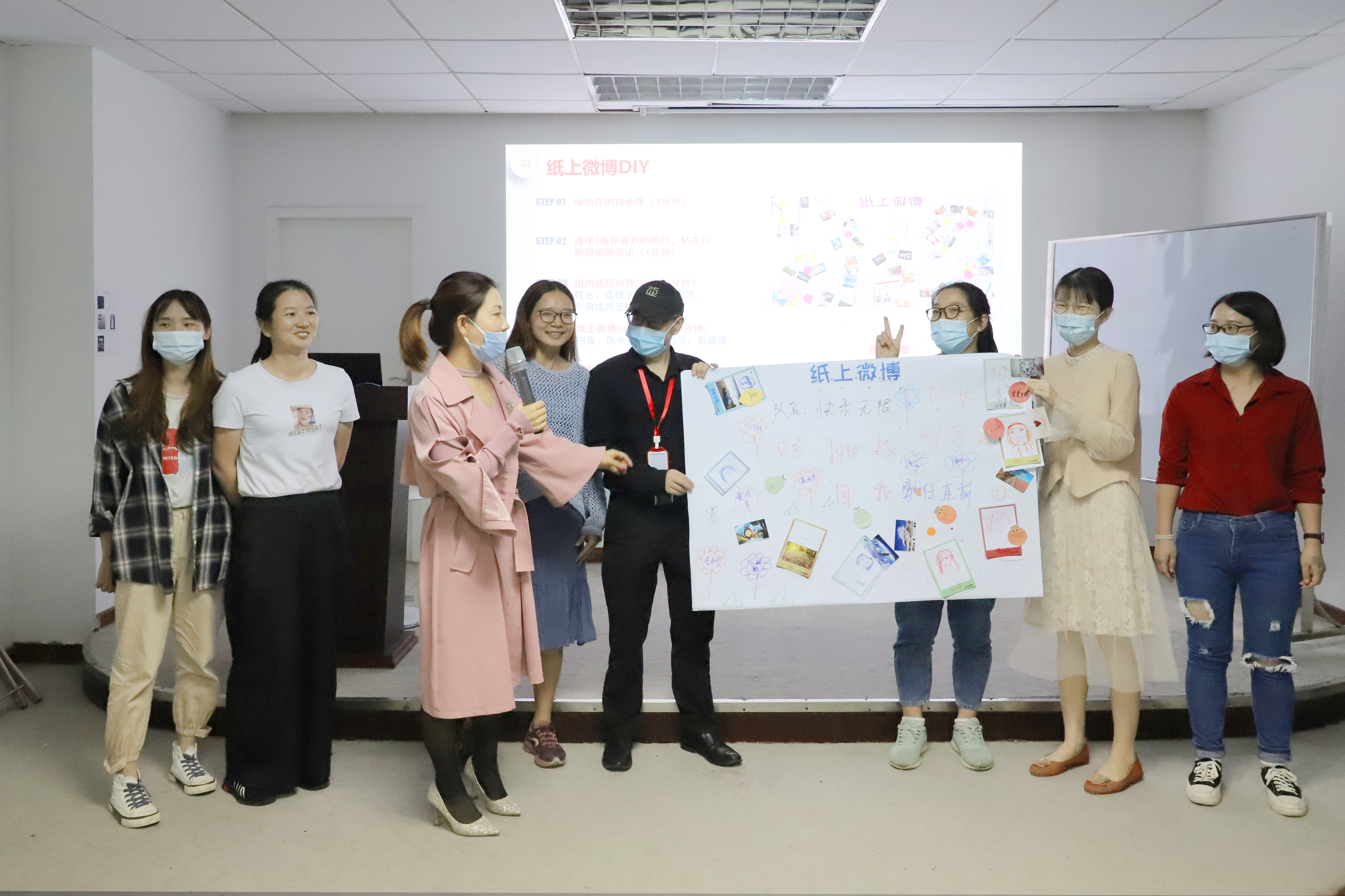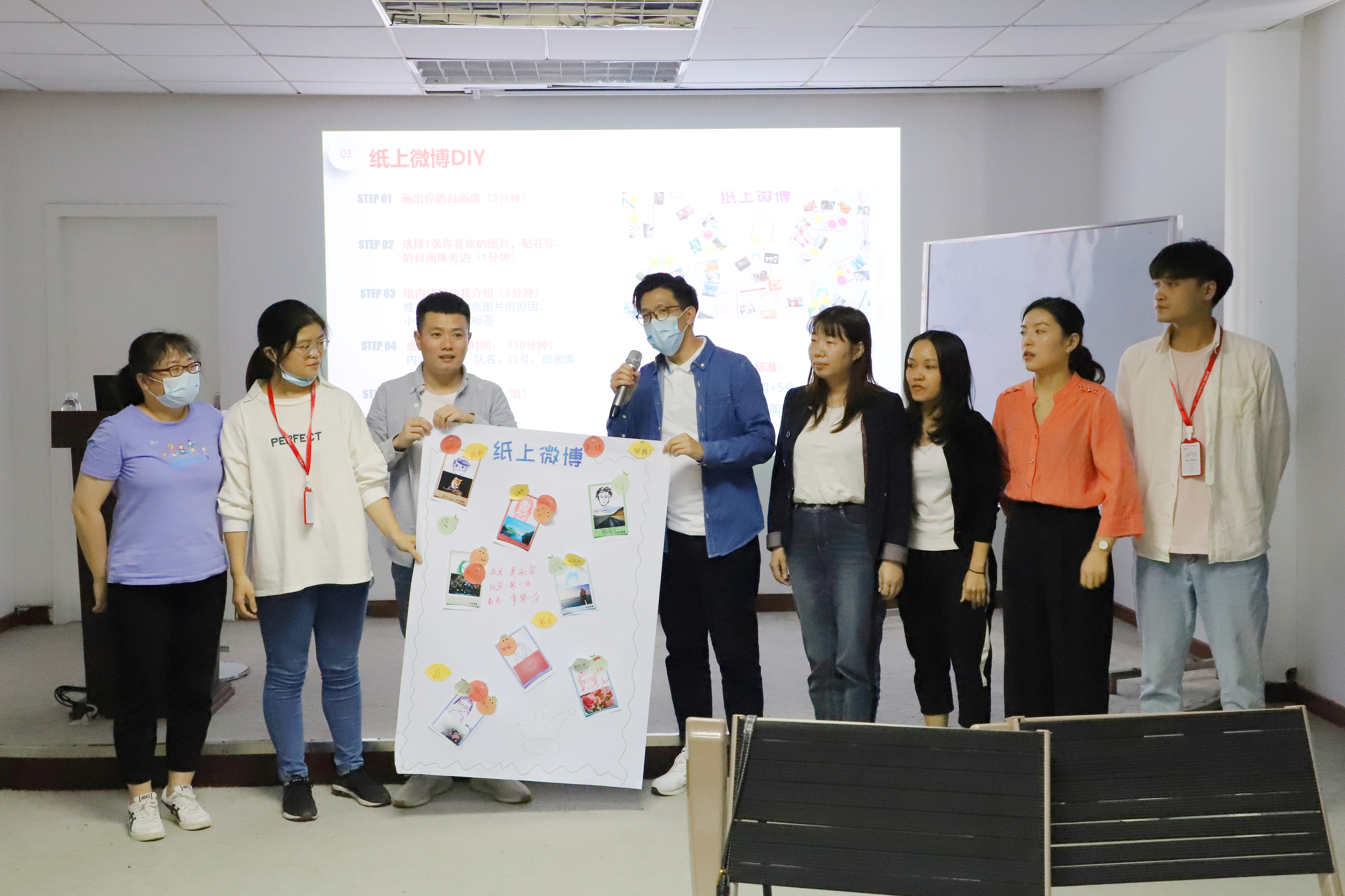 隨后,迎來了生動(dòng)有趣的團(tuán)隊(duì)破冰活動(dòng)。此次活動(dòng)項(xiàng)目紙上微博DIY——通過畫出自畫像、組內(nèi)成員自我介紹、紙上微博DIY以及團(tuán)隊(duì)展示,讓學(xué)員們通過游戲的形式迅速地認(rèn)識(shí)自己前后左右的同學(xué),打破相互之間的隔閡,快速地建立起信任。