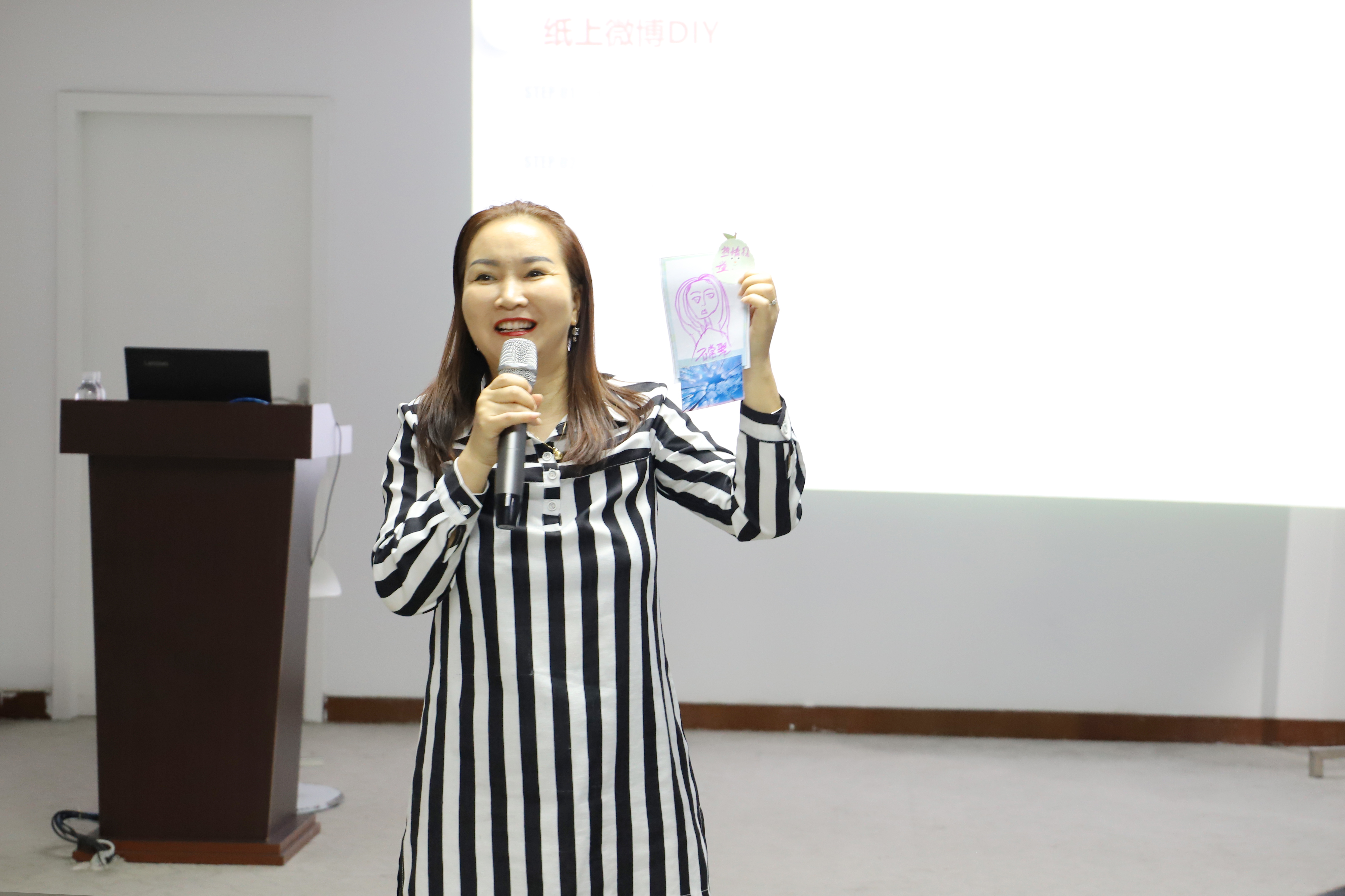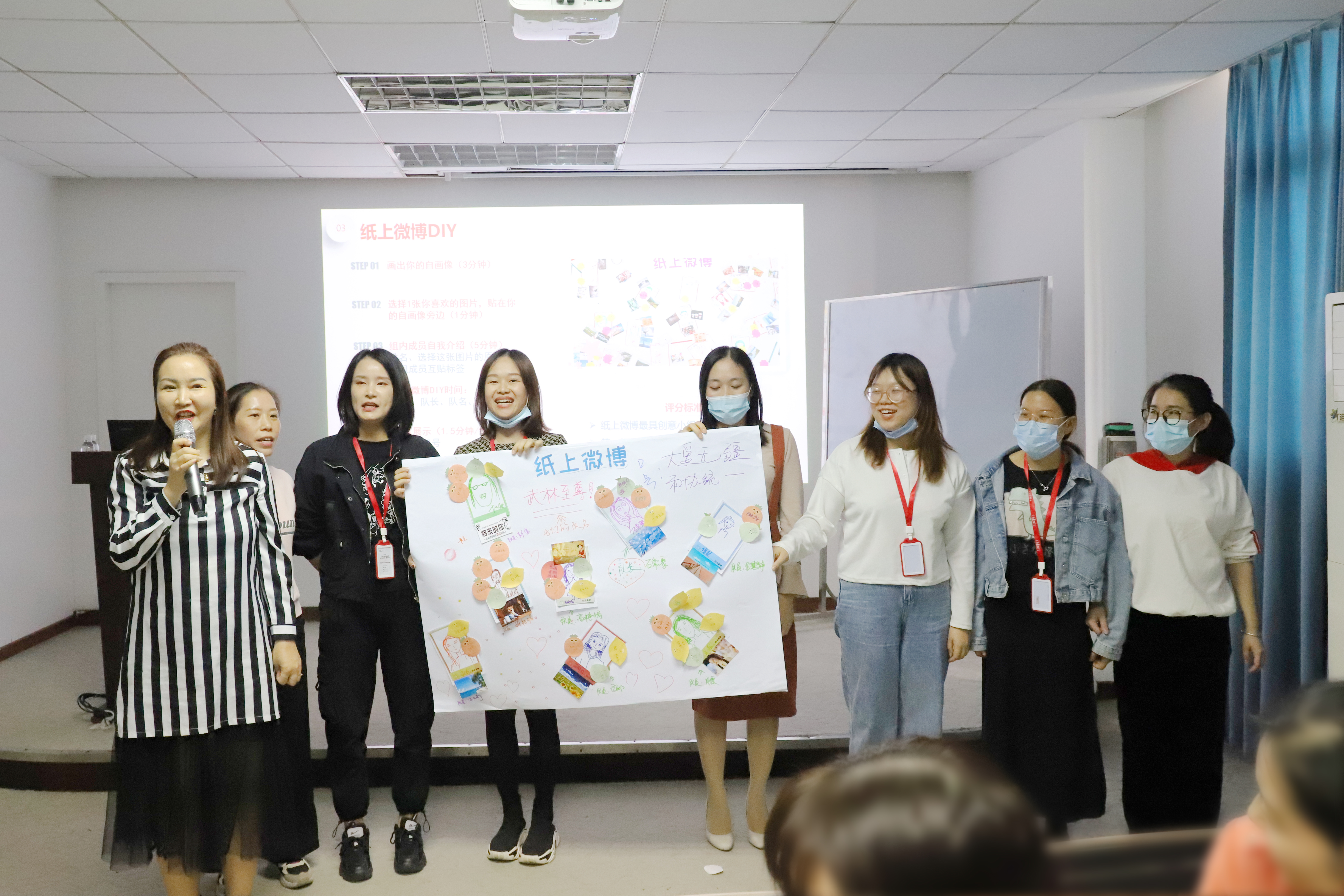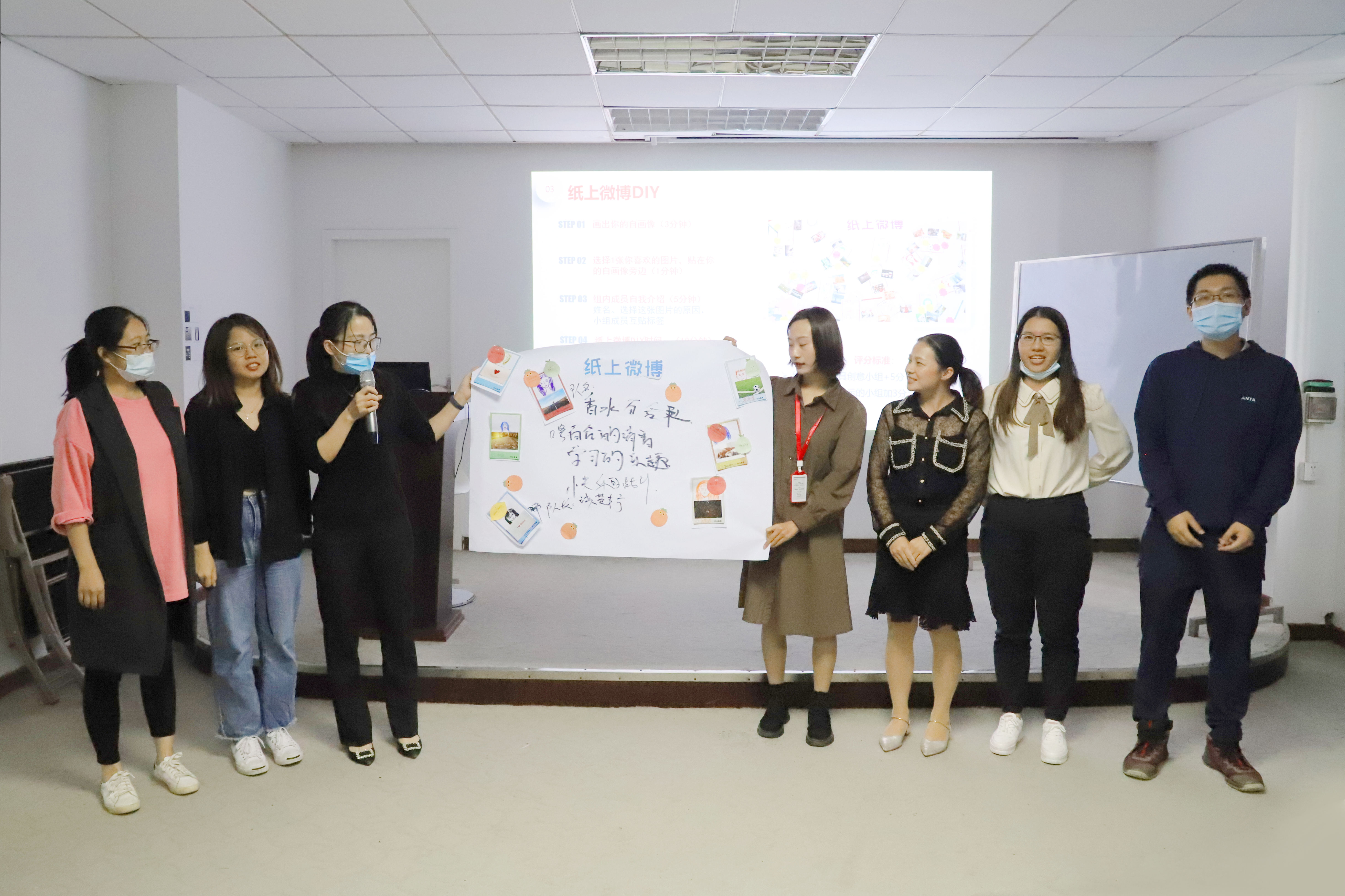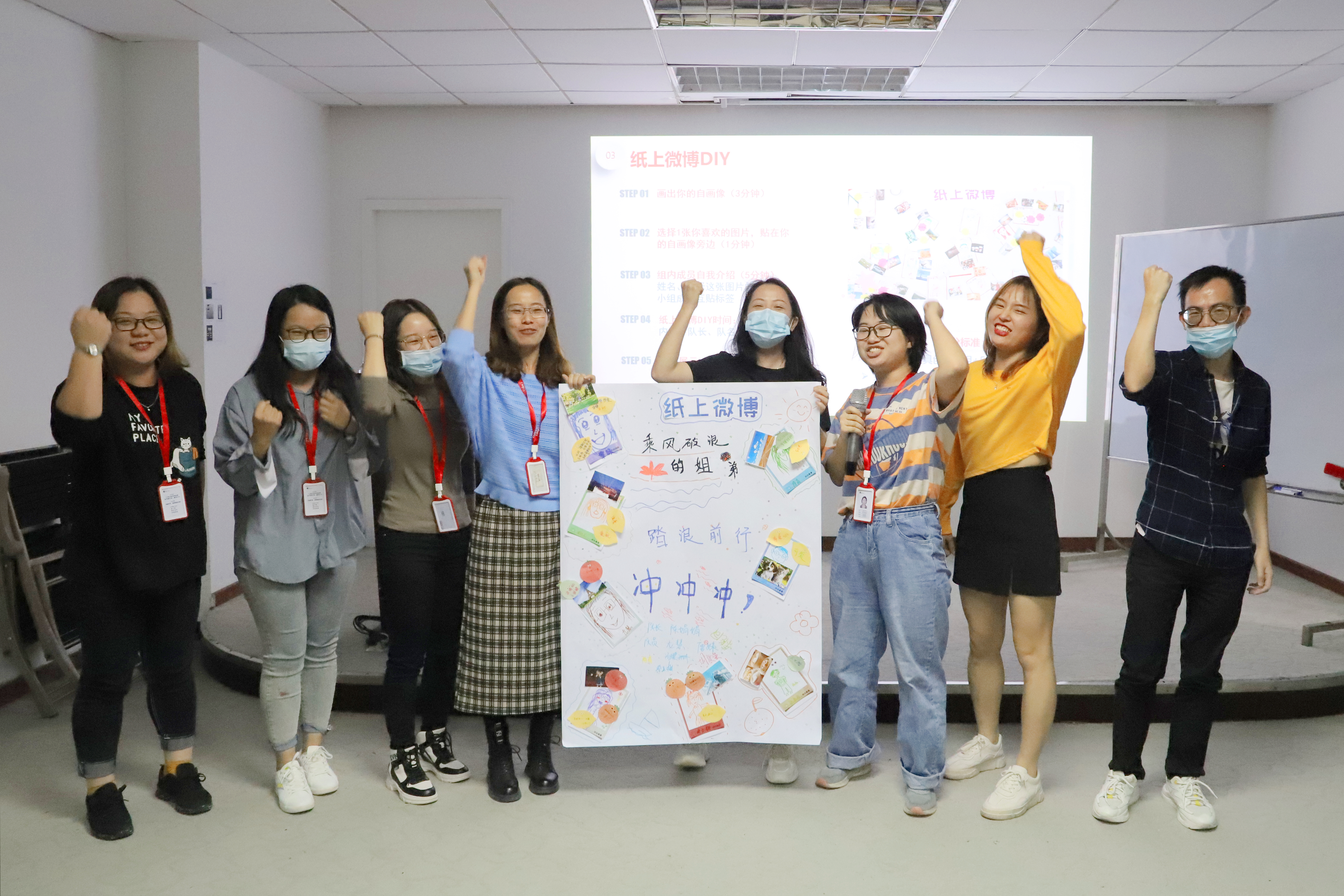 隨后,迎來了生動(dòng)有趣的團(tuán)隊(duì)破冰活動(dòng)。此次活動(dòng)項(xiàng)目紙上微博DIY——通過畫出自畫像、組內(nèi)成員自我介紹、紙上微博DIY以及團(tuán)隊(duì)展示,讓學(xué)員們通過游戲的形式迅速地認(rèn)識(shí)自己前后左右的同學(xué),打破相互之間的隔閡,快速地建立起信任。