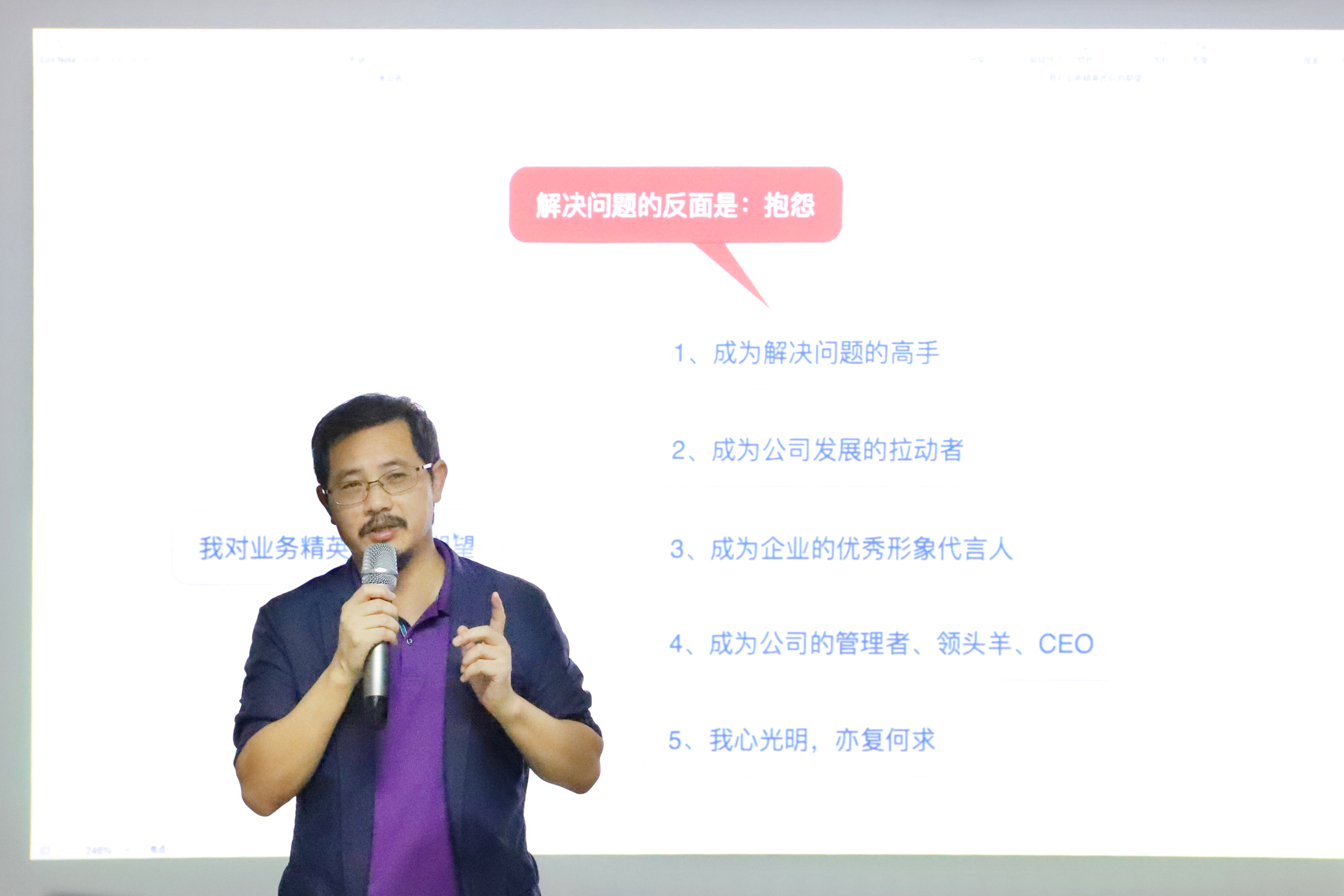 在講話中,唐總提出了對精英團(tuán)隊(duì)的期望——只有成為解決問題的高手,具備自我驅(qū)動(dòng)、不斷學(xué)習(xí)、目標(biāo)清晰簡單、講究效率、懂得利他、懂得敬畏的能力,才能稱之為精英。鼓勵(lì)學(xué)員成為公司發(fā)展的拉動(dòng)者,成為企業(yè)的優(yōu)秀形象代言人,乃至成為公司的管理者、領(lǐng)頭羊。
