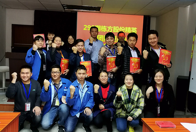 2017年11月23日,棟方股份精英《團隊復(fù)制》第一次落地分享會在公司員工培訓(xùn)室舉行,與會人員除公司邱副總經(jīng)理、黃副總經(jīng)理、人事行政中心胡總監(jiān)及各精英團隊負(fù)責(zé)人之外,還有幸邀請到聚成金牌講師李經(jīng)理一行蒞臨指導(dǎo)。