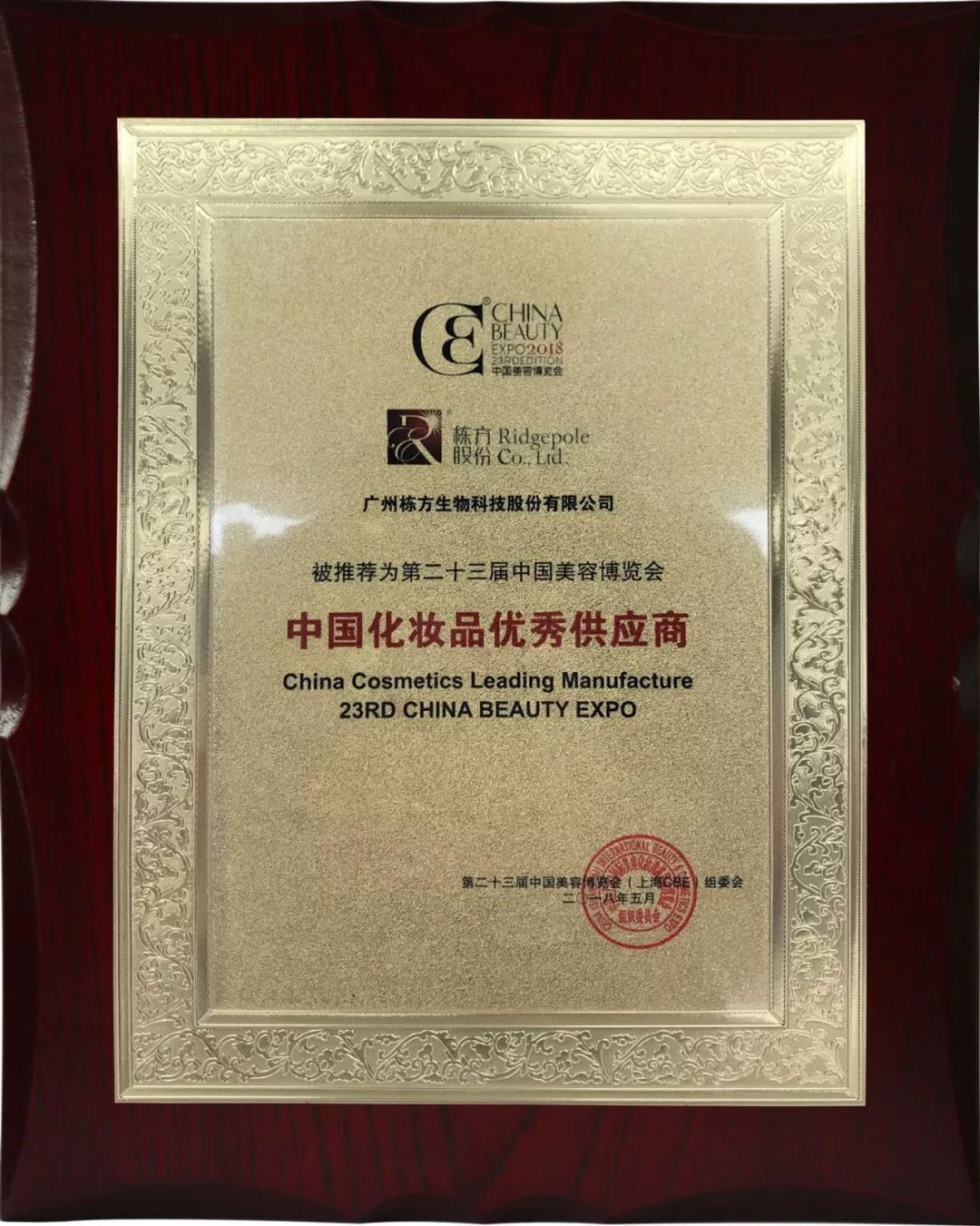 此次展會,棟方股份憑借其多年來在促進化妝品供應(yīng)鏈上下游企業(yè)“綠色可持續(xù)發(fā)展”方面所取得的優(yōu)異成績,獲評第二十三屆中國美容博覽會“中國化妝品優(yōu)秀供應(yīng)商”!