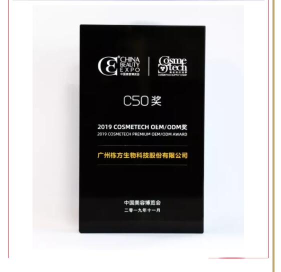祝賀棟方股份榮獲全球美妝供應(yīng)鏈權(quán)威大獎(jiǎng)——2019 COSMETECH OEM/ODM獎(jiǎng)