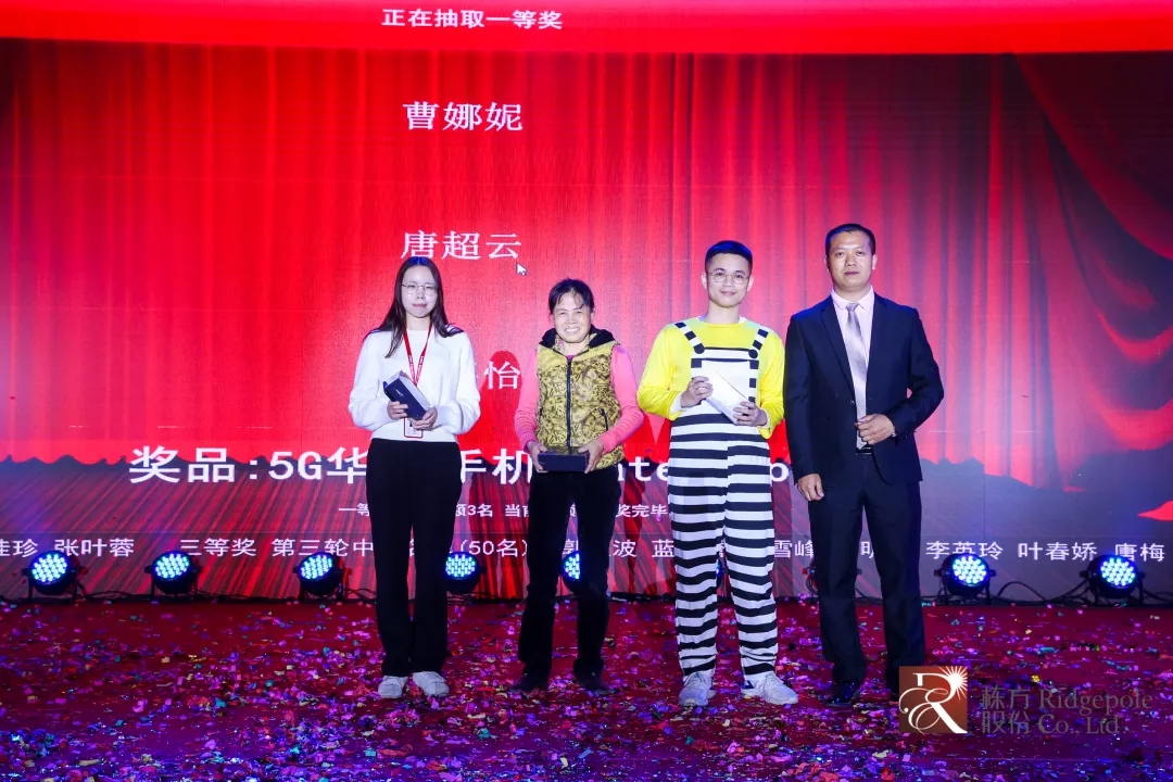 今年,公司為員工精心準備的獎品除現金紅包、紀念金鈔外,還有華為手機以及萬元家庭游豪華大獎。