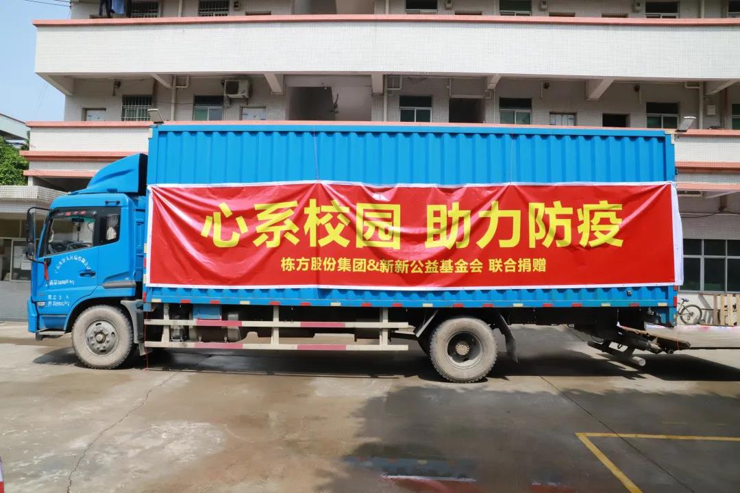 5月26日,棟方股份攜手新新公益基金會,再次向花都區(qū)教育局捐贈100000支免洗洗手液,助力疫情防控工作和安全有序復學。