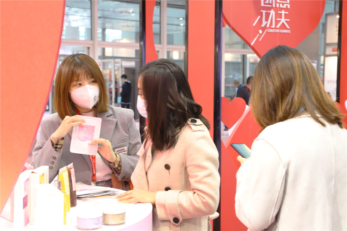 創(chuàng)意升級,科技加碼,棟方股份館內(nèi)陳列眾多創(chuàng)意星品。輕醫(yī)美、植物有機、精油、花瓣添加、彩妝、香水等全部美妝品類產(chǎn)品展現(xiàn)眼前,向每一位駐足參觀的客戶,展示著棟方股份技術(shù)與藝術(shù)完美結(jié)合的創(chuàng)新成果。